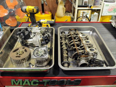 カムシャフト周辺までアクセスするにはタイミングベルトを脱着することになるから、同時作業が最適な機会になります。 |
